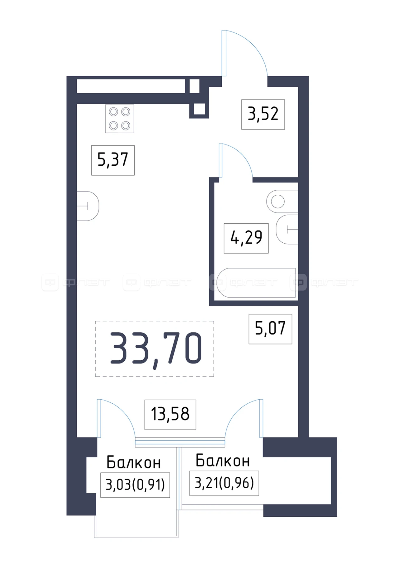 - 33.7/18.65/5.37 м²