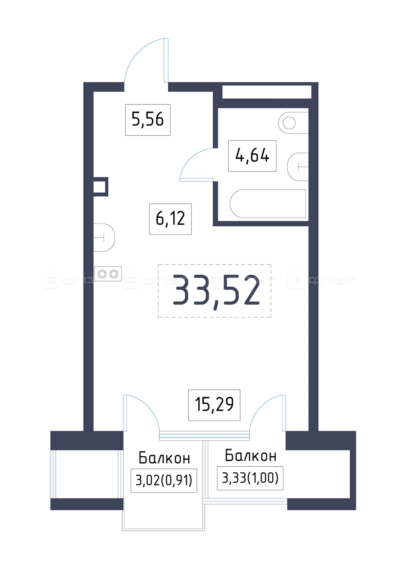 - 33.52/15.29/6.12 м²