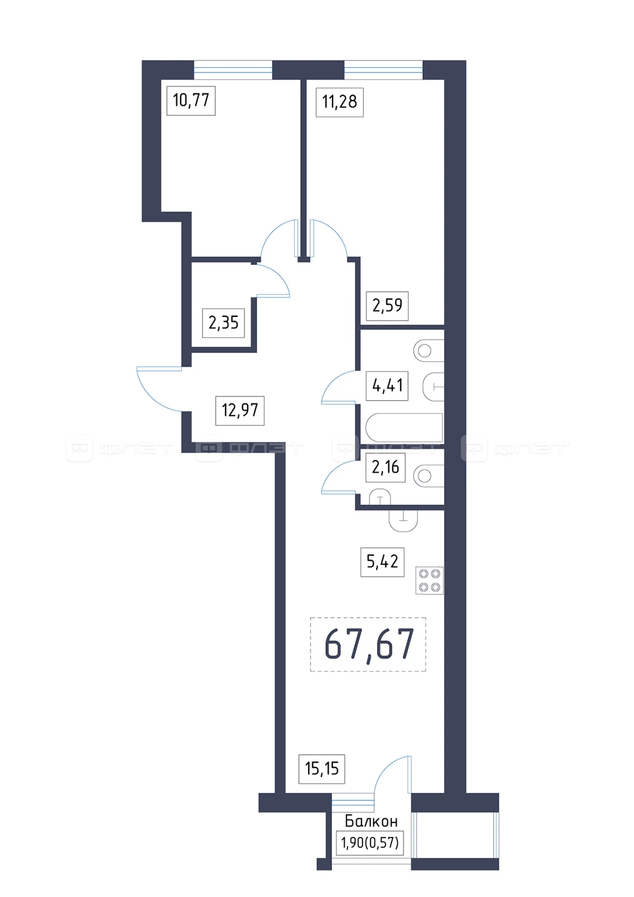 - 67.67/37.2/5.42 м²